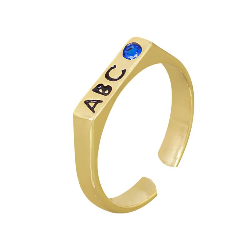 ANEL ABC COM ZIRCÔNIA AZUL – BANHADO EM OURO! As crianças crescem rápido e cada conquista merece ser celebrada. Pensando nisso, criamos o delicado Anel ABC, inspirado nas primeiras formaturas e nos momentos especiais do início da vida escolar. O design traz a escrita ABC em baixo relevo com resina, acompanhado de um charmoso ponto de luz azul na lateral, que adiciona brilho e delicadeza à peça. Regulável para melhor ajuste e conforto no uso, hipoalergênico seguro para a pele sensível e com acabamento exclusivo em verniz protetor. Um ano de garantia, Ideal para revenda ou para presentear em grande estilo. Um anel cheio de significado para marcar conquistas e deixar as pequenas sempre estilosas.