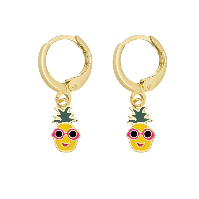 Brinco Argolinha Infantil Abacaxi com Óculos resinado. Semijoia banhada á ouro 18k revestida com uma camada exclusiva de verniz antialérgico.