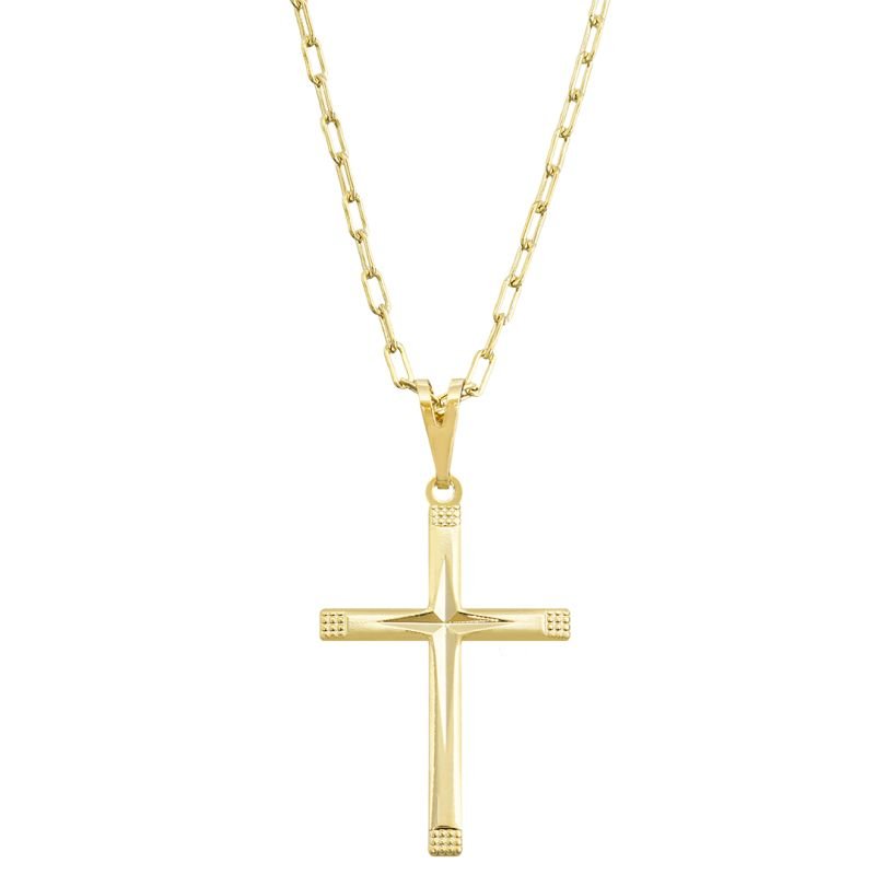 Para os pequenos que gostam de brilhar com estilo, o COLAR INFANTIL PARA MENINO CRUCIFIXO LISO com centro diamantado é pura elegância e conforto! Banhado em ouro e acompanhado pela delicada corrente Cartier, ele traz um toque sofisticado para qualquer momento, seja casual ou especial.