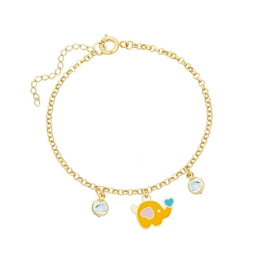 3. PULSEIRA INFANTIL ELEFANTINHO RESINADO COM PEDRAS BANHADO A OURO